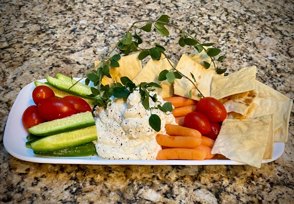 I chose to prepare Whipped Feta Dip, which is such a useful and easily modified recipe. As you may have gathered, I exercise a lot so I’m always looking for ways to sneak more protein into my diet. For a 2 tablespoon serving of dip to have 4 grams of protein is amazing! With just 65 calories, I can see thinning this down and turning it into sauces and dressings as well. The protein is supplemented by adding tofu to the feta cheese. I omitted the olive oil, so it’s actually even lower in calories. Some may also be impressed by the 0 carb count. We gobbled this up with assorted veggies and store bought pita chips. (There is also a recipe for whole wheat pita chips included in this book.)